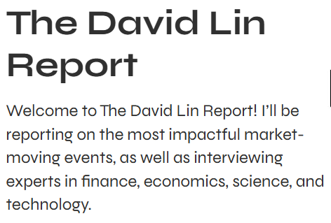 - The David Lin Report. Mijn guilty pleasure. In tegenstelling tot de voorgaande suggesties, zijn niet alle gasten bij deze beleggingspodcast even serieus te nemen. Maar hè, het is de beurs: je weet van te voren nooit wie er gelijk gaat krijgen; soms blijken de meest gekke voorspellingen uit te komen. Dit is een fijne manier om met verschillende economische visies in aanraking te komen en om duiding te krijgen bij wat er allemaal gebeurt in de economie en op de beurs.