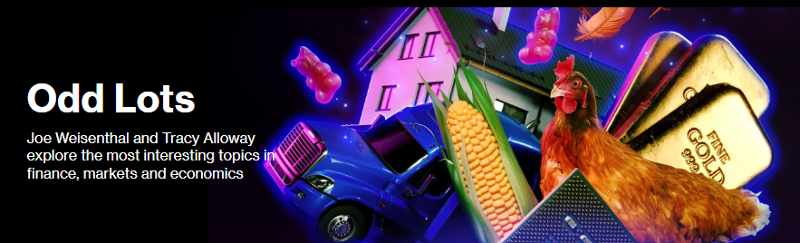 - Odd Lots. Zoals de naam al zegt: een beetje een rare verzameling onderwerpen over economische onderwerpen. Maar vaak wel actueel, interessant en verhelderend. Gemaakt door Bloomberg.