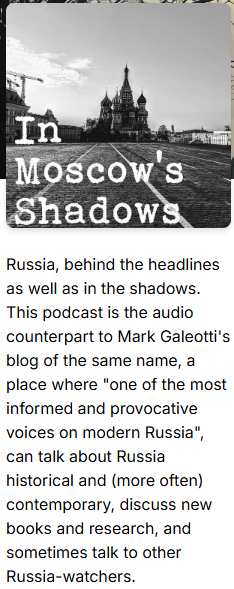 - In Moscow's Shadows. Ik heb altijd al een fascinatie gehad voor Rusland, misschien omdat een van mijn voorvaderen 200 jaar geleden erestalmeester van de Russische tsaar was (ja echt...). Anyway: Mark Galeotti duidt rustig wat er in Rusland gebeurt, van de machtsverhoudingen aan de top, tot uiteraard hoe het nou verder moet/gaat tussen Rusland en de rest van de wereld.